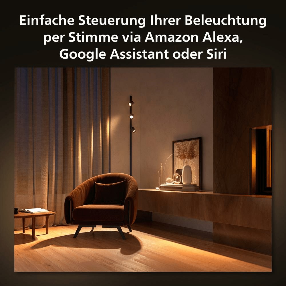Anwendungen: Zur Nutzung einer Sprachsteuerung mittels Amazon Alexa, Google Assistant oder Apple HomeKit ist die Verbindung mit einer extra erhältlichen Philips Hue Bridge notwendig. Durch Nutzung der Bridge ist eine Steuerung von Zuhause oder unterwegs und viele Lichtsteuerungen bei bis zu maximal 50 Leuchtmitteln im ganzen Wohnraum möglich.