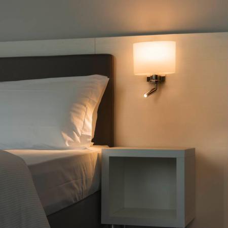 Die KENKUA SPOT besticht durch einen gelungenen Mix der Stahl- und Glaselementen und ist, neben der Hauptlichtquelle, mit einer LED Leseleuchte in warmweißer Lichtfarbe ausgestattet. Durch den gewählten Abstrahlwinkel der LED-Leseleuchte wirkt diese nahezu blendfrei und sorgt so für ein angenehmes, auf den Nutzer entspannt wirkendes Licht. Dank des dreh- und schwenkbaren Gelenkstückes kann die LED entsprechend ausgerichtet werden. Der E27 Lampenhalter hinter dem Hauptlampenschirm, sowie der bereits eingebaute LED Konverter, machen den KENKUA SPOT fertig für den direkten Anschluss an 230V Netzspannung. Diese Leuchte enthält eingebaute LED-Lampen und hat Fassungen für Leuchtmittel E27.