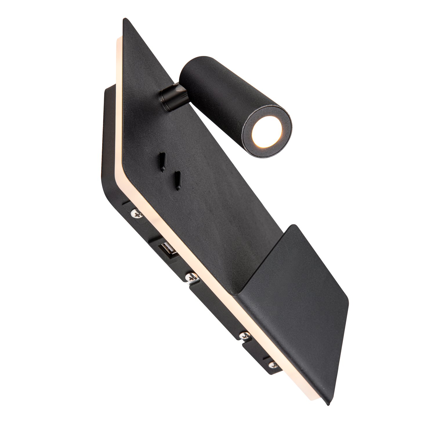 Entwickelt als ideale Bett- oder Leseleuchte bietet die SOMNILA Leuchtenserie ein innovatives und benutzerfreundliches Leuchten Konzept. Die elegante Wandaufbauleuchte ist schwarz lackiertem Aluminium gefertigt und besticht durch professionell verarbeitete Mechanik, gepaart mit moderner LED Technik. Ausgestattet mit einem USB Anschluss sowie dem notwendigen Smartphone Halter bietet die Leuchte einen zusätzlichen Mehrwert. Die Spot-Beleuchtung kann individuell ausgerichtet werden uns leuchtet somit ideal und punktgenau aus. Die zweite Lichtquelle dient der Allgemeinbeleuchtung. Bei Bedarf können die beiden Lichtquellen der Leuchte, über die verbauten Schalter getrennt, voneinander geschaltet werden. Um sich perfekt in den Raum zu integrieren stehen die Leuchten als Version zur links- bzw. rechtsseitigen Montage zur Verfügung. Die Leuchte enthält eingebaute LED-Lampen.