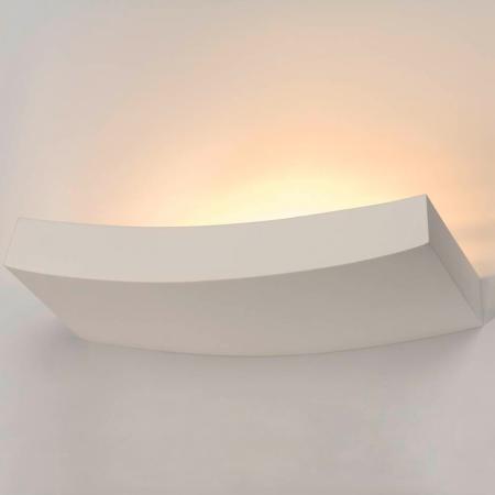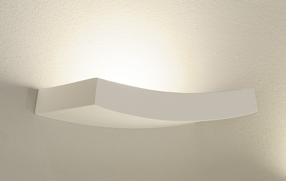 Elegant geschwungene schlichte Wandleuchte aus weiss-mattiertem Gips auf Wunsch bemalbar