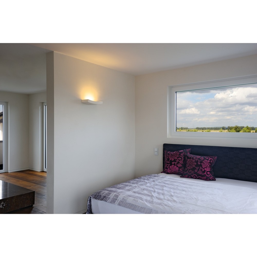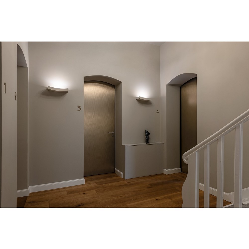 Mit der Gipsleuchte CURVE verfügen Sie über eine höchst individuelle Wandleuchte mit puristischer Formgebung. Vorbereitet für die Aufnahme von Lampen des Typs R7s ist sie fertig für den direkten Anschluss an 230V Netzspannung. Das im Lieferumfang enthaltene Schleifpapier dient der Oberflächenreinigung. Die Leuchte ist nach Grundierung individuell mit Wandfarbe überstreichbar.