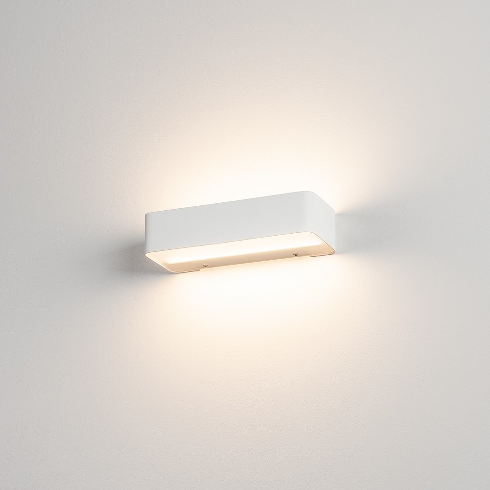 Weiße rechteckige Wandleuchte aus Stahl und satiniertem blendfreien Glas mit warmweißer LED