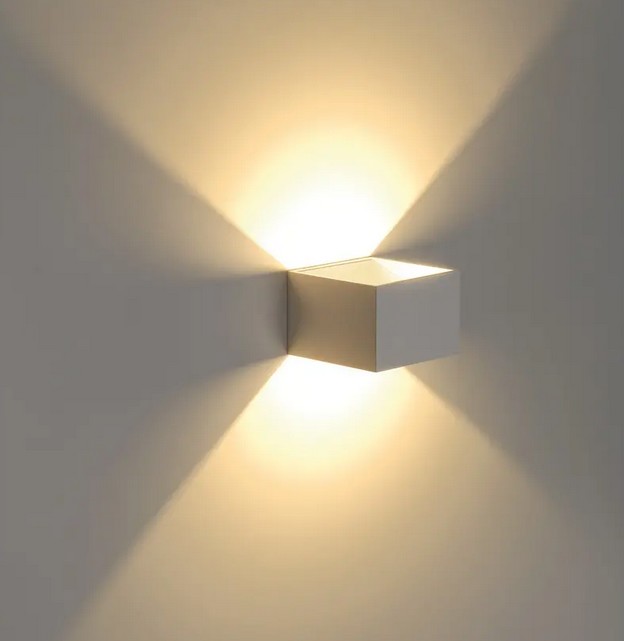 Quadratische Wandleuchte LOGS in Weiß inkl. warmweißer LED