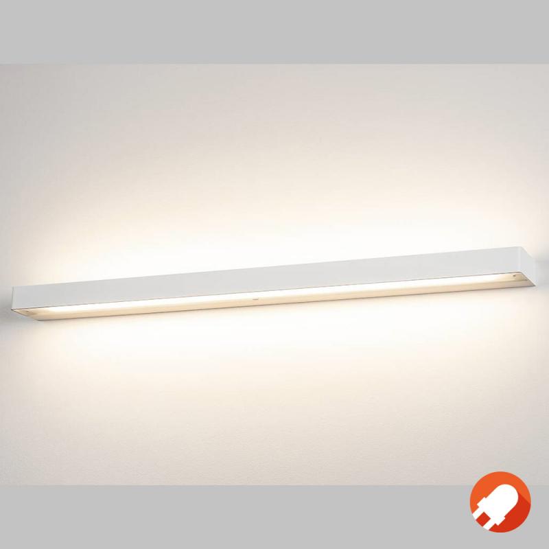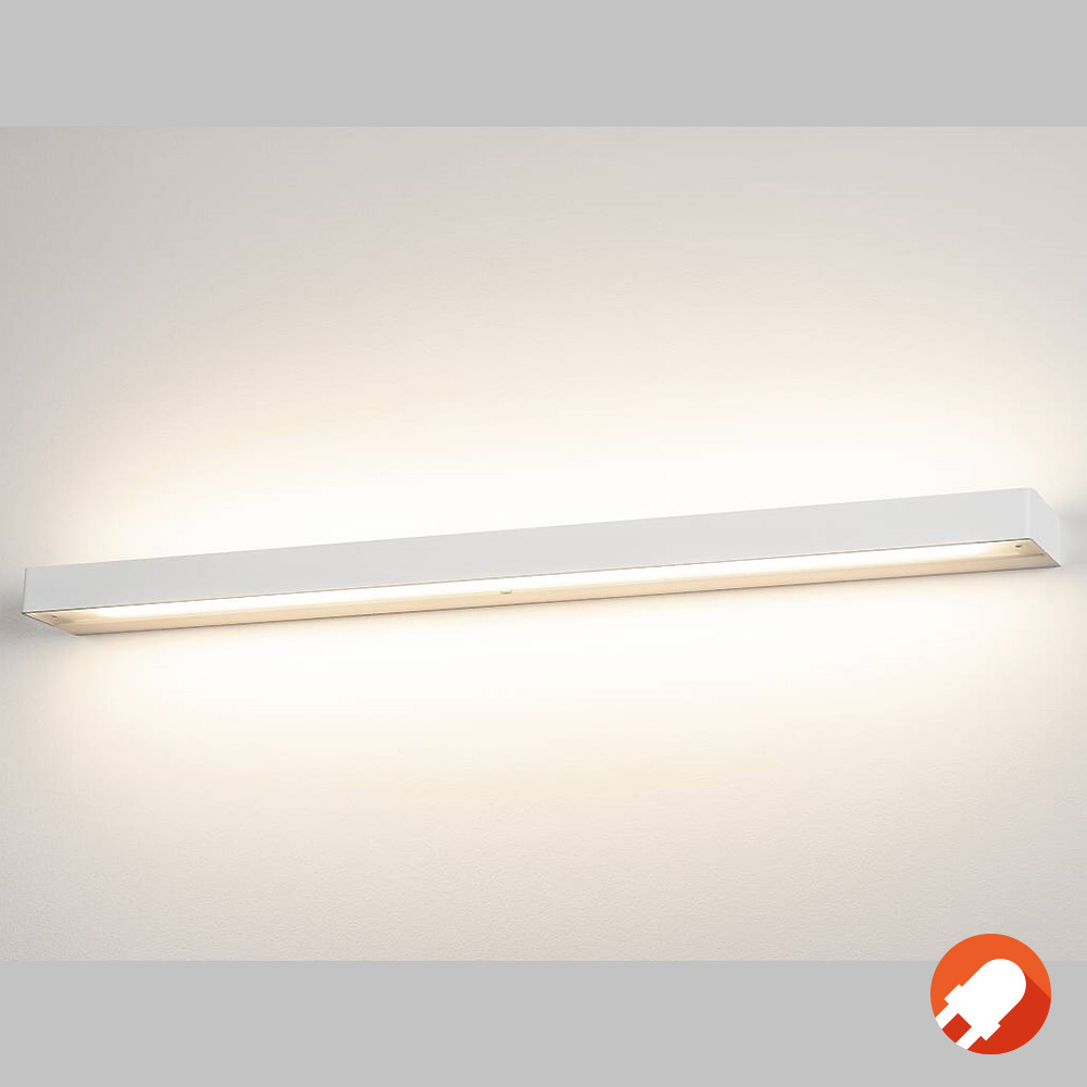 Die weiße Wandleuchte ist aus Aluminium fertigt und mit einer satinierten Glasabdeckung versehen. Die integrierte 22 Watt SMD LED bietet eine kräftige Lichtwirkung, welche mit Leuchtstoffröhren vergleichbar ist. Die Leuchte ist fertig für den direkten Anschluss an 230V Netzspannung.