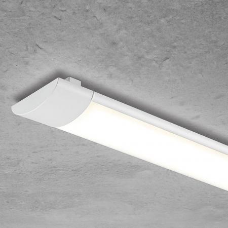 Die LED-Lichtleiste kann aufgrund der hohen Lichtausbeute problemlos als Hauptbeleuchtung für zahlreiche Räume eingesetzt werden. Dank des eleganten Designs fügt sie sich dabei harmonisch in jede Umgebung ein. Die Kabeleinführung in den Klemmraum, welcher unauffällig hinter der seitlichen Abdeckung untergebracht ist, erfolgt von der Rückseite. Sollte kein Anschluss direkt an der Decke vorhanden sein, kann die Leuchte mit den mitgelieferten Abstandshaltern montiert werden, wodurch das Kabel seitlich zugeführt werden kann. Die Abstandshalter haben eine Aufbauhöhe von 10mm.