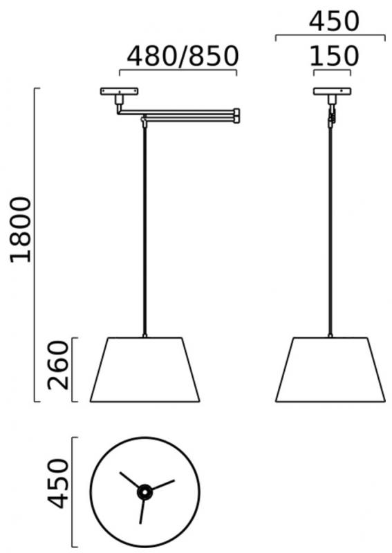 | Kabellänge in cm | 40- 180, Länge Ausleger max. 85 cm; Ø Baldachin 15 cm