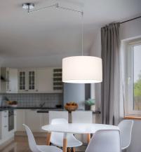 Die Hängeleuchte verfügt über einen Stoffschirm, der mit einer Seilabhängung vom beweglichen Deckenarm ragt. Stoffschirme sorgen im allgemeinen für ein warmes und behagliches Wohlfühl-Licht, was der Textilhängeleuchte CERTA erstklassig gelingt. Wenn Sie diese Pendelleuchte über einem Ess- oder Couchtisch anbringen, dann strahlt sie durch den Stoffschirm pure Gemütlichkeit aus und lässt Ihr Ambiente stilvoll sowie wohnlich wirken. Auch Ihre Gäste werden von dieser besonderen Leuchte begeistert sein.