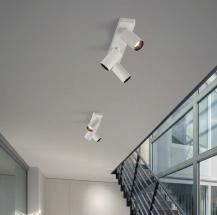 Der Wandstrahler kann als Wandlampe eingesetzt werden. Vorteil des Strahlers ist, dass er entweder als Uplight oder Downlight geometrische Lichtspiele an die Wand wirft oder als beweglicher Strahler individuell seinen Lichtkegel wirft. Im Flur am Spiegel eine gute Wahl.