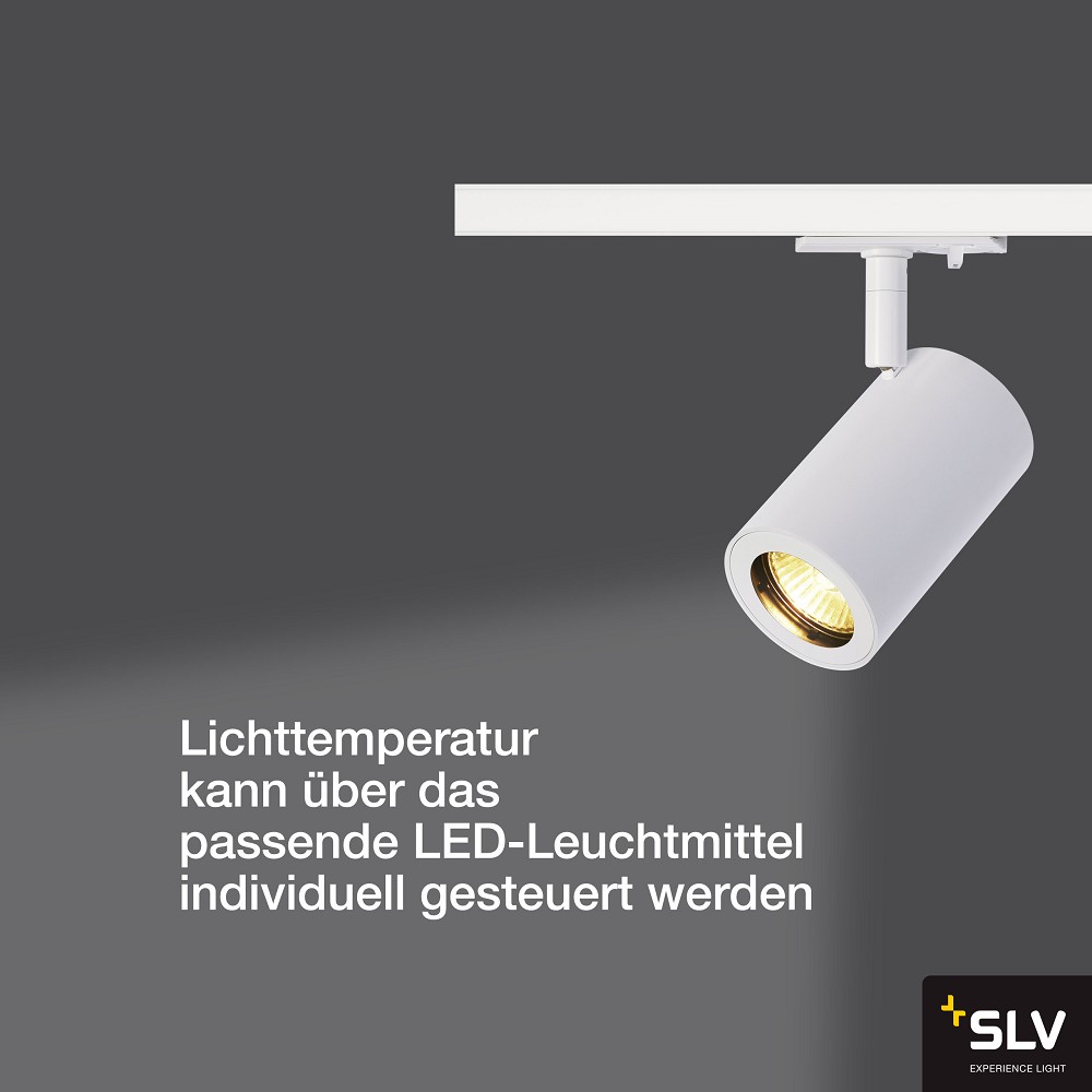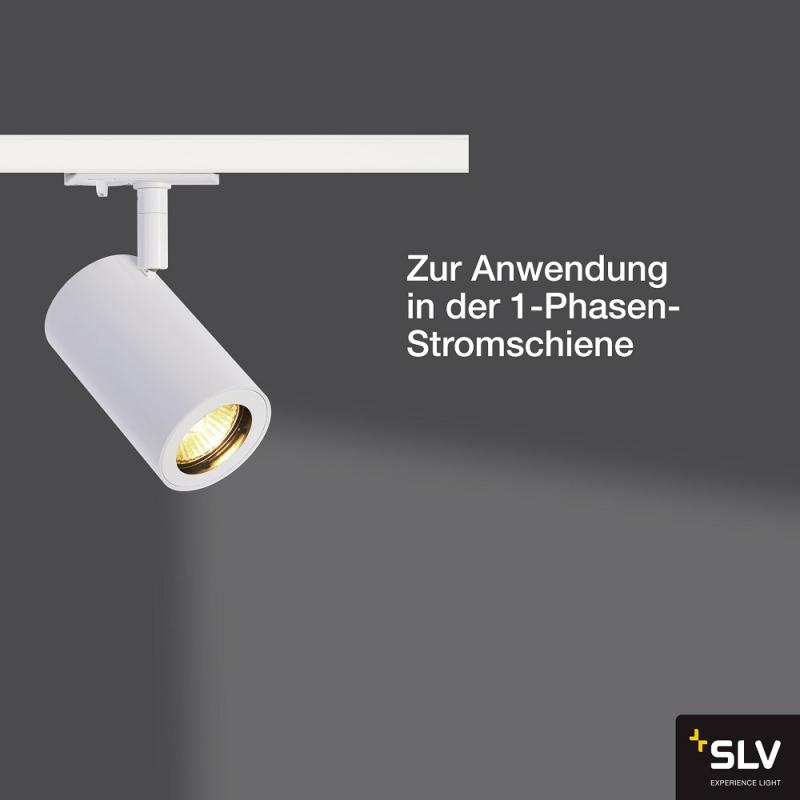 Durch die eingebaute GU10 Hochvoltfassung ist ENOLA_B fertig für den direkten Anschluss an das 1PHASEN Hochvoltschienensystem. Diese Leuchte ist geeignet für Leuchtmittel der Energieklassen: E - A++