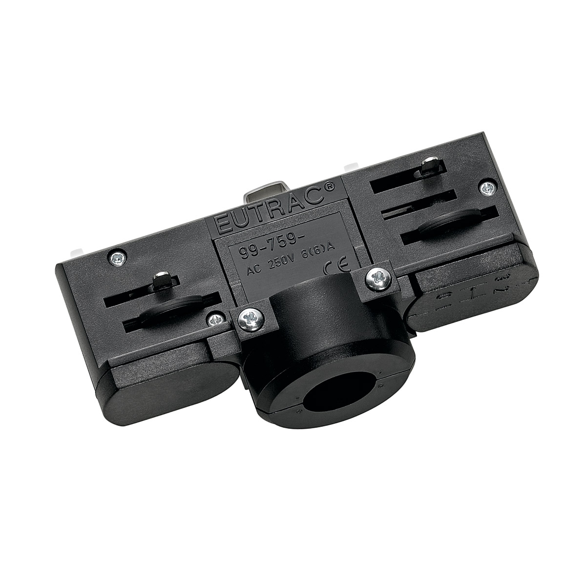 ALLGEMEINE INFORMATIONEN Montageart: Schienenmontage ABMESSUNGEN & GEWICHT Gewicht netto (ohne Verpackung): 0,066 kg Gewicht brutto (inkl. Verpackung): 0,069 kg LICHTTECHNISCHE DATEN FARBEN & MATERIALIEN Material: Kunststoff Gehäusefarbe: Schwarz BESONDERHEIT Maximale mechanische Belastung 5 kg Das Montagezubehör umfasst einen Montagenippel, ein Gewinderohr und eine Zugentlastung Maximale Belastung 16A. Auch für Eutrac 3-Phasen Einbauschiene geeignet
