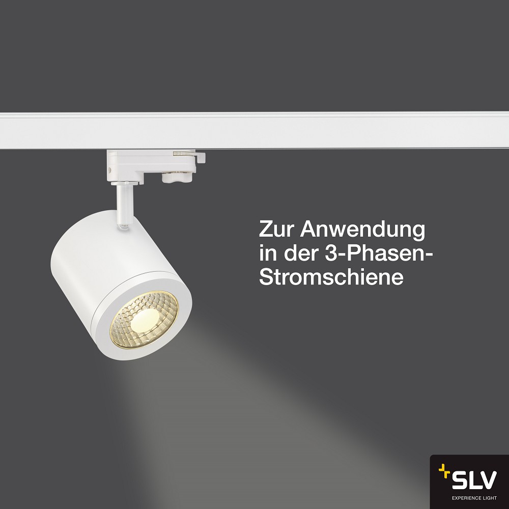 Spot für Hochvolt-Stromschiene 3Phasen, LED, 3000K, rund, weiß, 55°, 11,2 W, inkl. 3Phasen-Adapter,