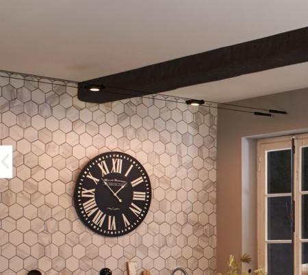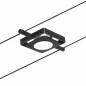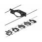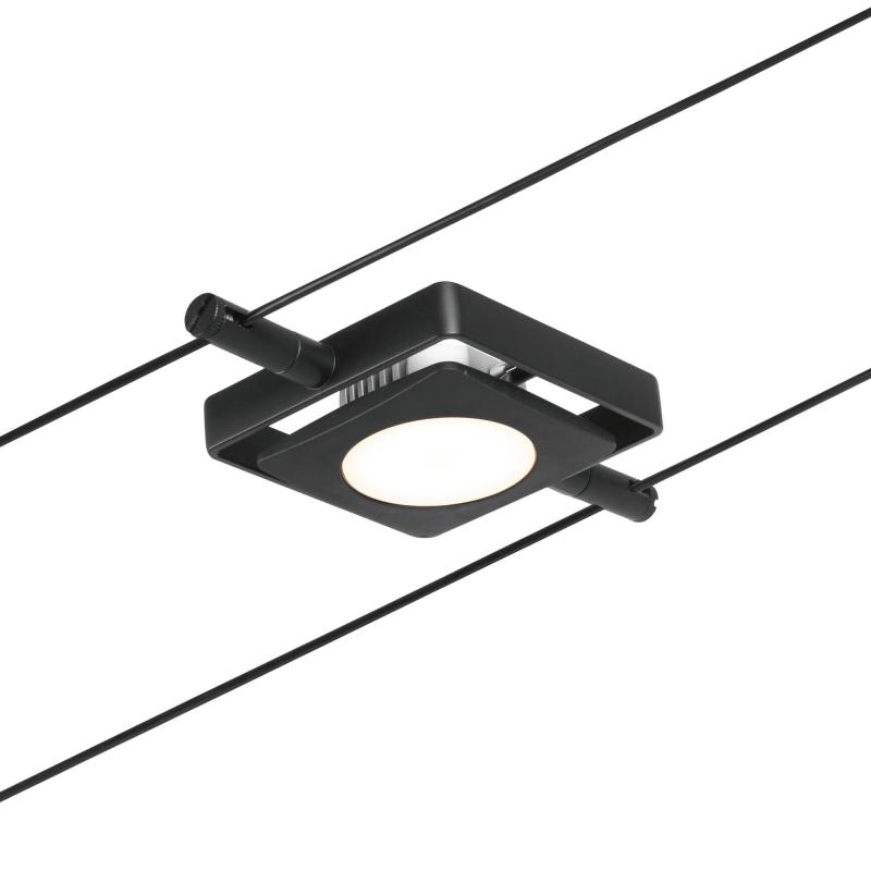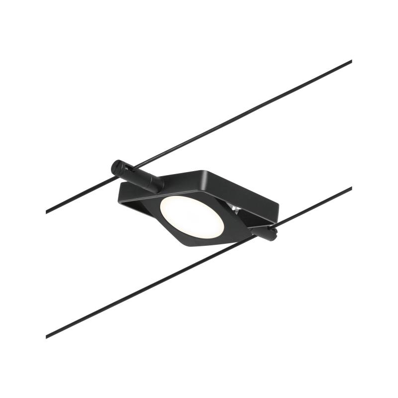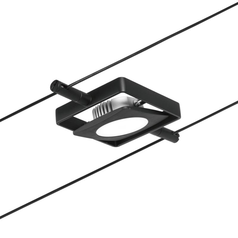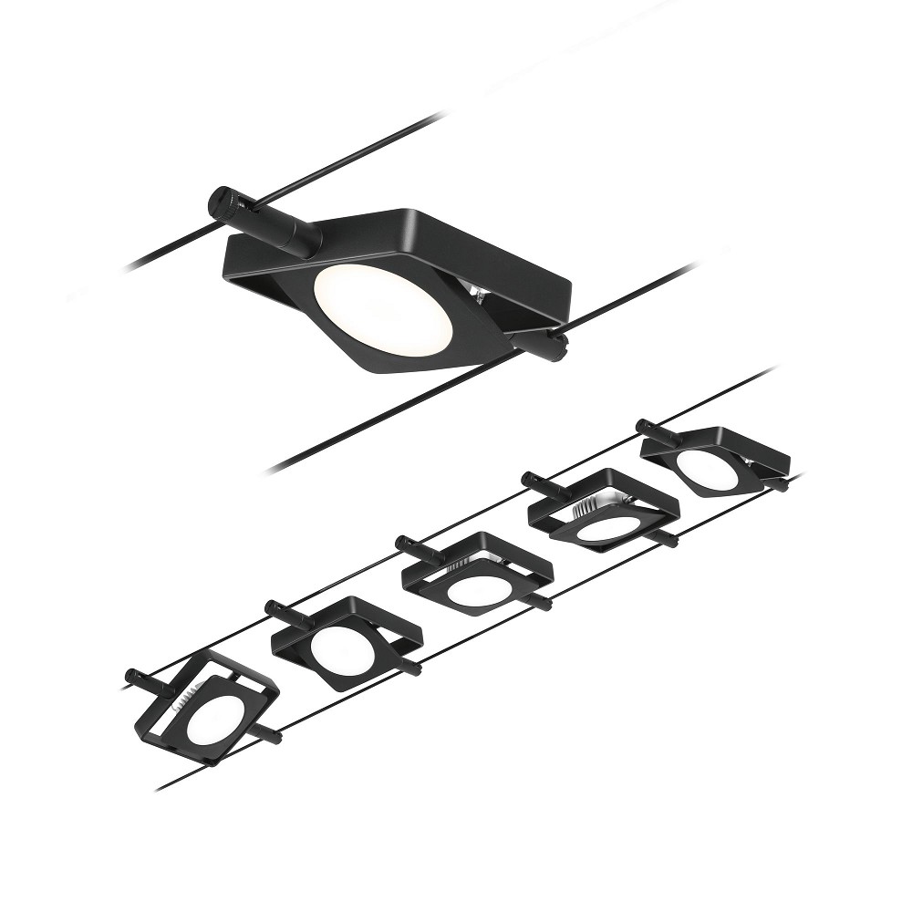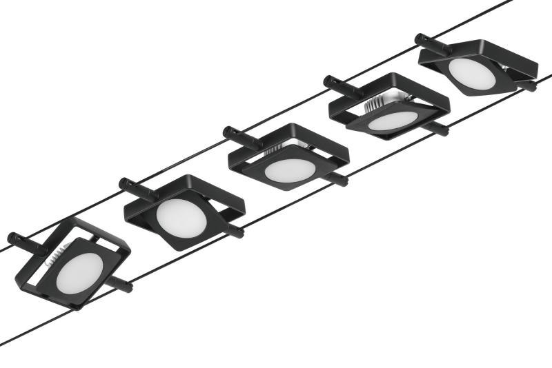 Die Serie MacLED in Schwarz matt#Chrom mit 5 LED-Spots kann sowohl an der Wand als auch an der Decke montiert werden und bietet dadurch grenzenlose Gestaltungsmöglichkeiten. Egal ob gerade, schräg oder verwinkelt - Seilsysteme passen in jeden Raum und sind die Problemlöser für schwierige Installationsbedingungen. Das Basisset lässt sich individuell durch Einzelspots, Umlenker und weiteres Zubehör ergänzen. Das Seil mit einer Länge vom 10 m, kann in der Mitte geteilt werden, sodass das System auf max. 5 m gespannt werden kann. Mit diesem System lässt sich eine optimale Lichtverteilung realisieren, bei steigendem Lichtbedarf lässt es sich problemlos erweitern. Für die Verteilung der Leuchten im gesamten Raum wird nur ein Stromauslass benötigt. Systeme mit der Technik 12V DC (Gleichspannung) lassen sich nicht über einen Wand-Einbaudimmer dimmen.