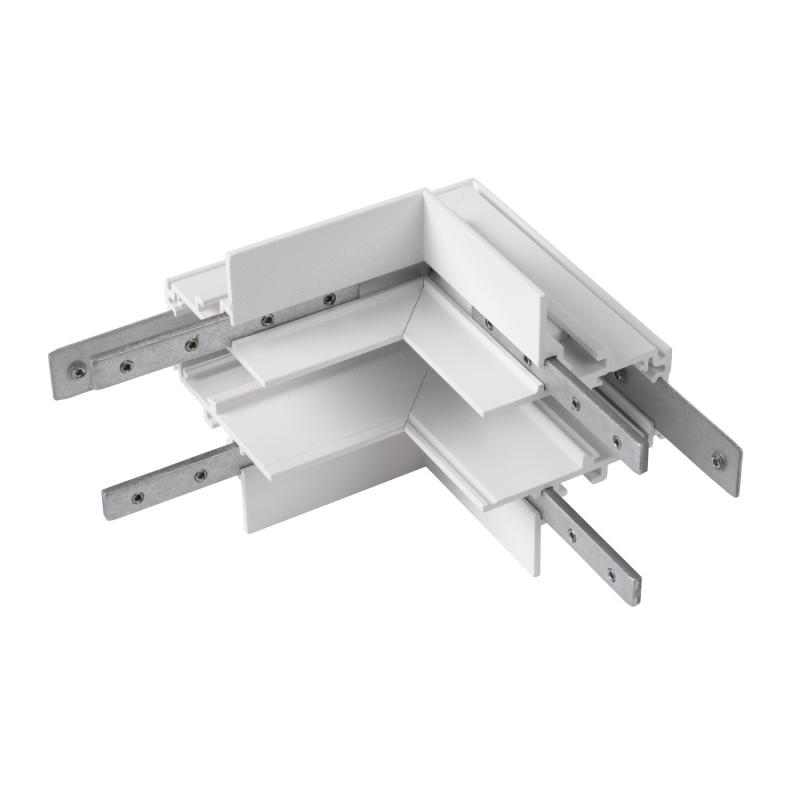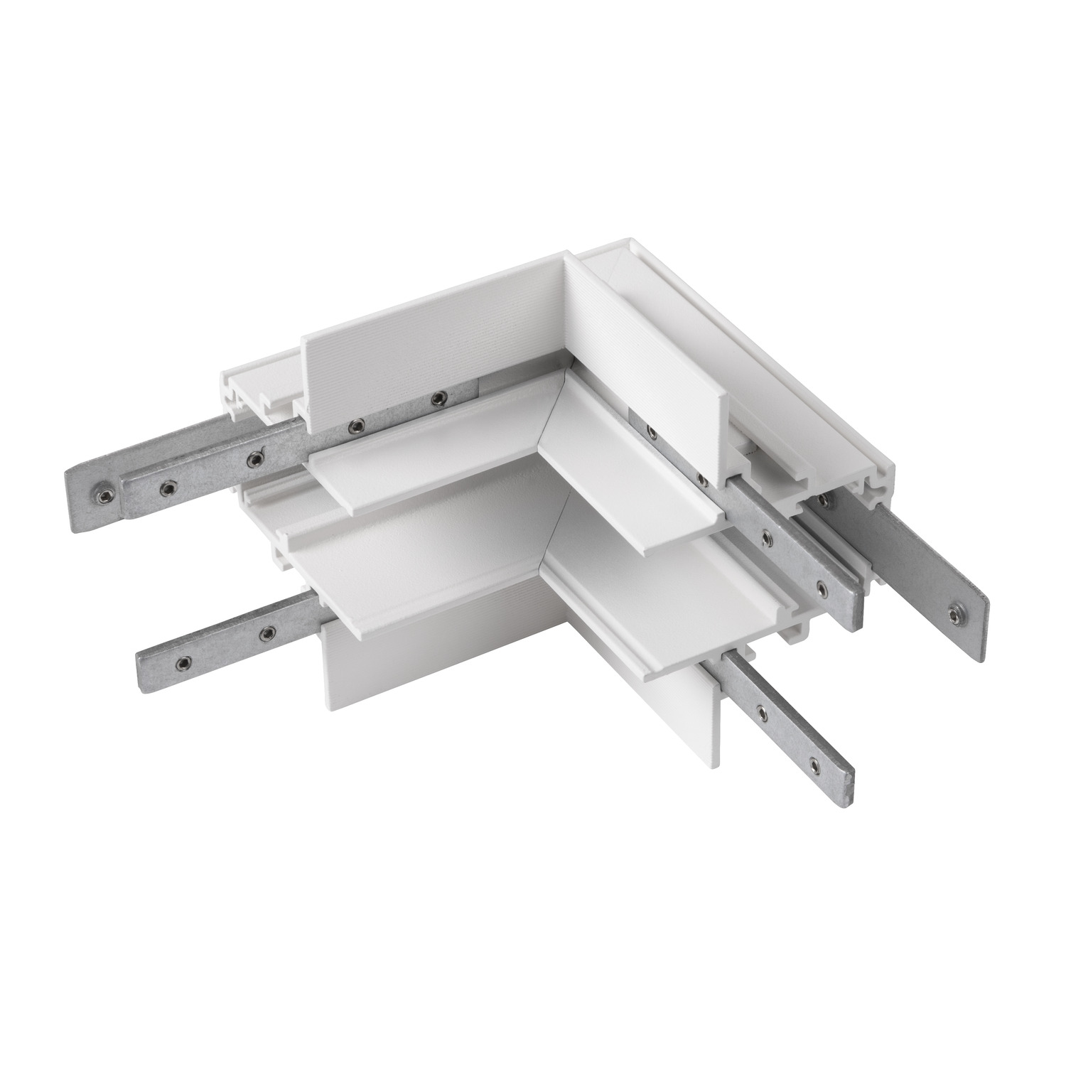 Der mechanische L-Verbinder verbindet zwei 48V TRACK Aufbauschienen ums Eck. Dabei fügt er sich unauffällig in das hochwertige Designkonzept mit ein. Passend zum genutzten Niedervolt-Schienensystem ist er wahlweise in Schwarz oder Weiß erhältlich.
