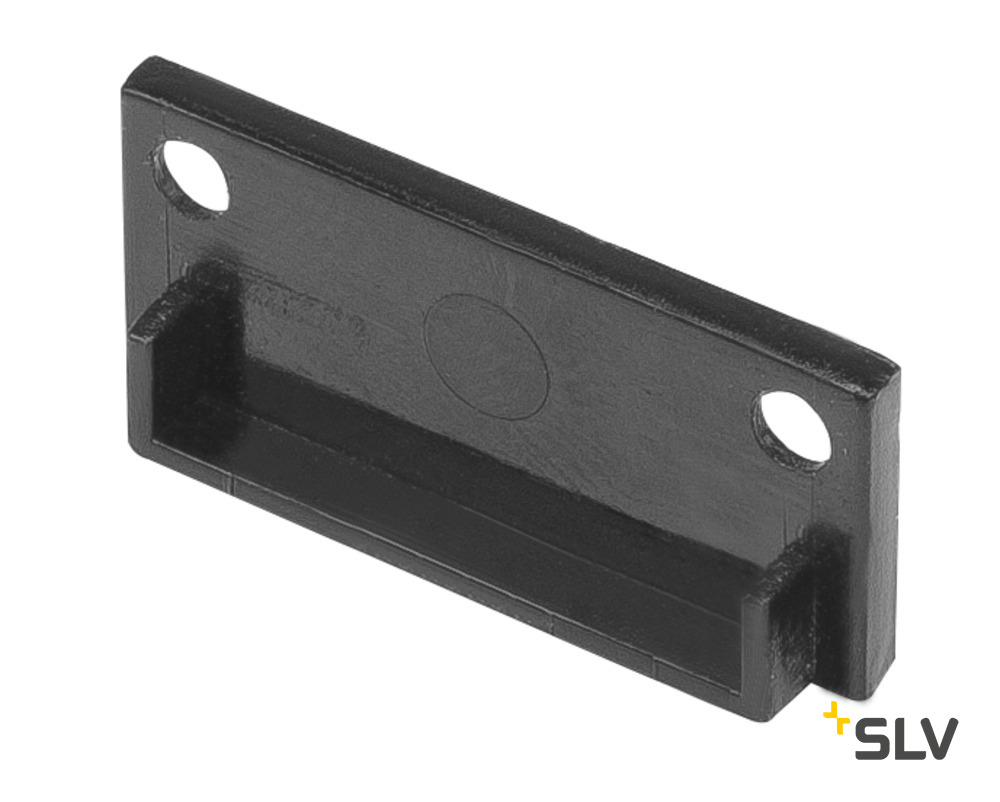 Schwarze Endkappe für das M-TRACK Niedervolt-Stromschienen-System.