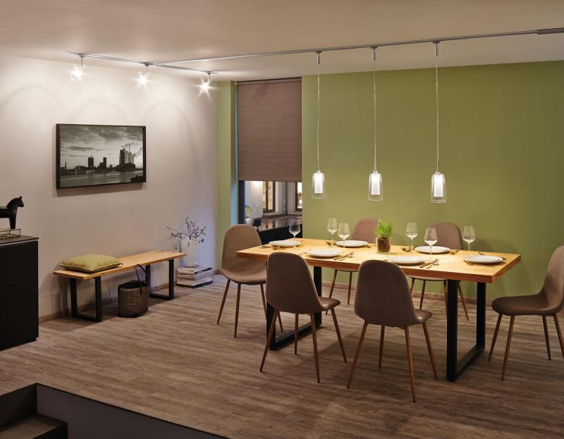 Mit dem vielseitigen URail 230V-Schienensystem können Sie ganz einfach verschiedenste Anwendungsbereiche innerhalb eines Raumes beleuchten. Pendelleuchten über dem Esstisch oder als Tresenbeleuchtung setzen optische Highlights und sorgen für eine stimmungsvolle Atmosphäre beim Essen, Spielen und netten Gesprächen. Das URail LED Pendel Arido aus hochwertigem Glas spendet dank der Satinierung des innenliegenden Schirms besonders blendarmes Licht. Der äußere Schirm aus Klarglas verleiht dem Pendel seinen besonderen Lagenlook, der mit jedem Einrichtungsstil kombinierbar ist. Es lässt sich individuell kürzen und damit optimal an Ihre Bedürfnisse und räumliche Gegebenheiten anpassen.