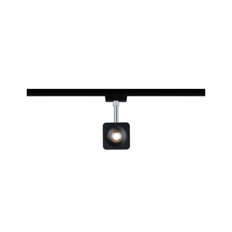 URail Spot Cube Schwarz matt Chrom dimmbar warmweiße WohnraumbeleuchtungDer schwarz matte URail Spot Cube bietet Ihnen durch die eingesetzte Kugellinse eine hohe Lichtqualität. Richten Sie den Spot beispielweise auf die Wand, um damit gezielt Objekte zu inszenieren, erhalten Sie eine saubere Kante zwischen Licht- und Schattenbereich. Die Helligkeit lässt sich per Wanddimmer regulieren.
