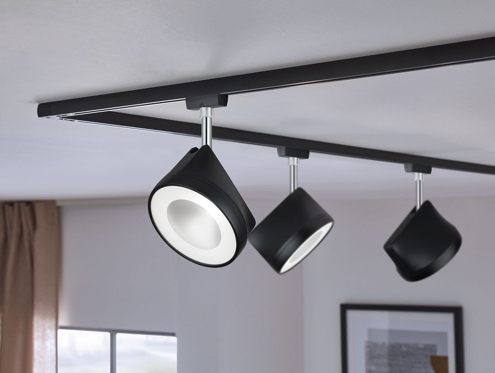 Der schwarze URail Spot Arena mit chromfarbenen Akzenten zeichnet sich durch seinen hohen Lumen Output aus. Trotz seines flachen Designs sorgt er durch die eingebaute Linse für gerichtetes Licht mit einem definierten Ausstrahlwinkel. Die Helligkeit lässt sich per Wanddimmer regulieren.