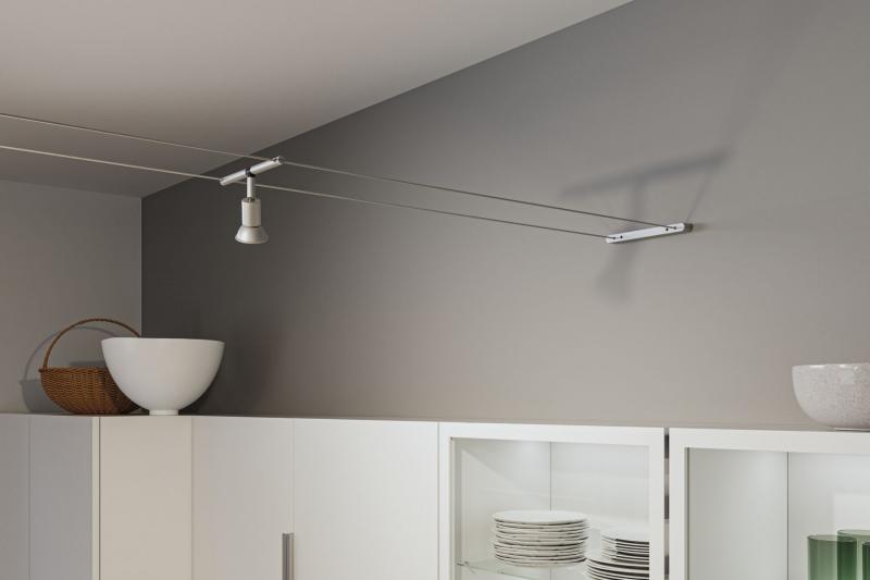 Das chrom matte Spann-Montage-Set dient der Installation von senkrecht zur Wand verlaufenden Seilen. Innerhalb des Gehäuses ist ein Schraubmechanismus. Hier wird das Seil mit Madenschrauben fixiert und beim Drehen des Mechanismus das eine Seil eingezogen. Auf der gegenüberliegenden Seite wird dann das andere Seil gespannt. Mit dem Set und weiteren Komponenten lässt sich ein Seilsystems nach speziellen Anforderungen erstellen. Dank des modernen, geradlinigen Designs passt es zu jedem Einrichtungsstil!