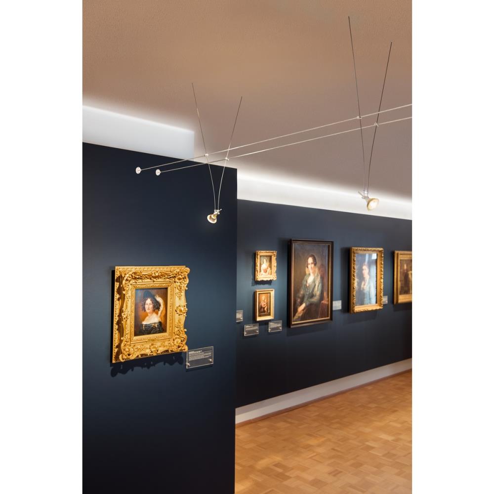SEILLEUCHTE für das Niedervolt Seil-System dessen Halogen- sowie LED-Leuchtmittel kompatible GU5,3 Fassung an zwei Stahlseilen befestigt ist. Der kompatible Seilabstand liegt bei 15,5cm und ist in mehreren Farben erhältlich. Diese Leuchte ist geeignet für Leuchtmittel der Energieklassen: C - A+