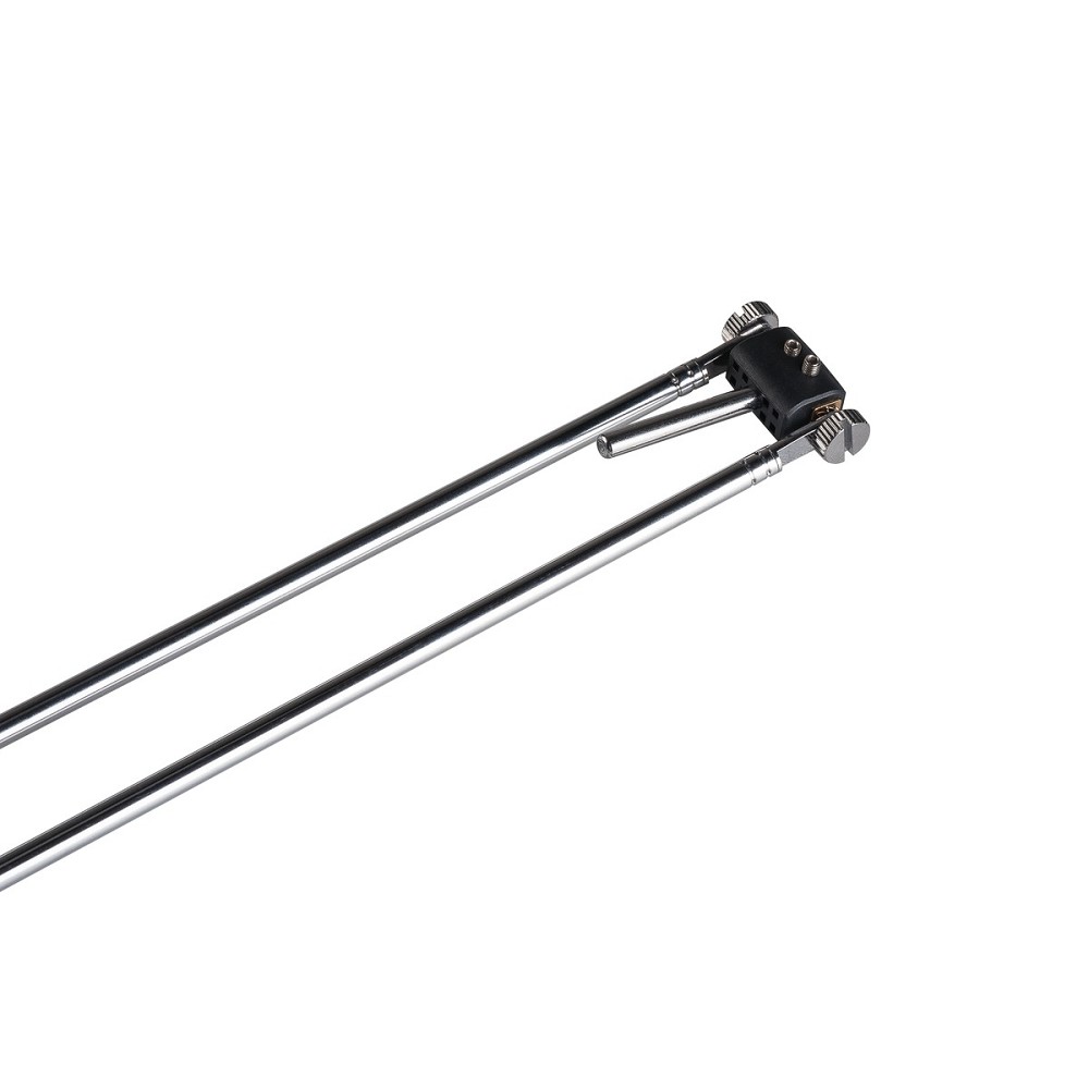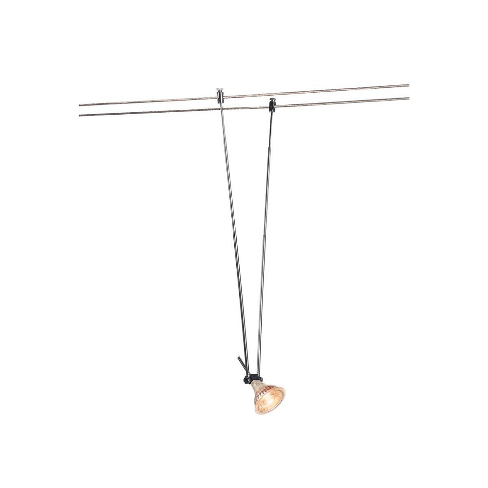 TELESKOP Strahler für das Niedervolt Seil-System dessen Halogen- sowie LED-Leuchtmittel kompatible GU5,3 Fassung an zwei schwenkbaren, Teleskopstäben befestigt ist. Der kompatible Seilabstand liegt bei 15,5cm. Diese Leuchte ist geeignet für Leuchtmittel der Energieklassen: C - A+