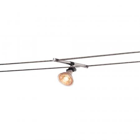 Schwenkbarer Strahler COSMIC für das Niedervolt Seil-System. Durch den verbauten GU5,3 Sockel ist der Strahler für Halogen- sowie LED-Leuchtmittel geeignet. Der kompatible Seilabstand beträgt 15,5cm. Diese Leuchte ist geeignet für Leuchtmittel der Energieklassen: C - A+