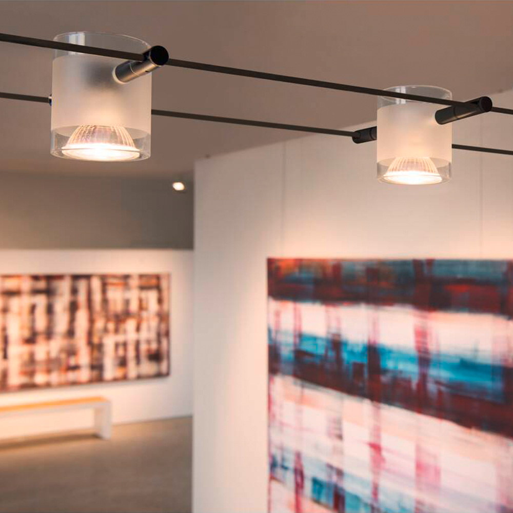 Aus Stahl und teilsatiniertem Glas bestehende Strahler COMET für das Niedervolt Seil-System. Durch den verbauten GU5,3 Sockel ist der Strahler für Halogen- sowie LED-Leuchtmittel geeignet. Der maximal kompatible Seilabstand beträgt 15,5cm. Diese Leuchte ist geeignet für Leuchtmittel der Energieklassen: C - A+