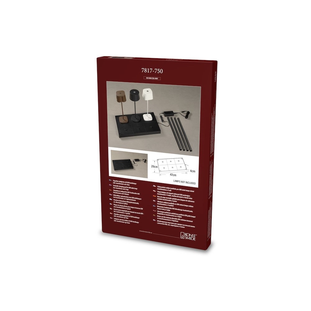 Die Ladestation ist besonders für Gastronomie und Holellerie praktisch, da sie eine gleichzeitige schnelle Aufladung der Konstsmide USB-Tisch Leuchten ermöglicht.