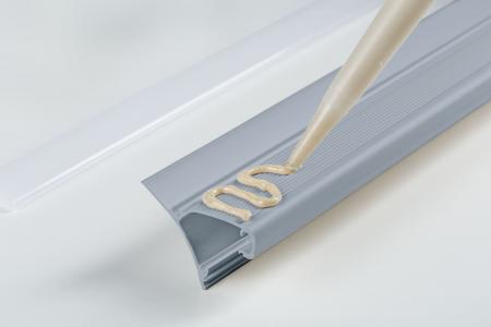 Corner Profil bietet innovative Möglichkeiten zur dekorativen Raumbeleuchtung mit LED-Strips beliebiger Lichtfarbe. Der Lichtaustritt ist schräg gegen die Wand gerichtete und lässt die Decke anmutig schweben. Das Profil in Form einer schlichten Hohlkehle kann farblich angepasst werden und ist tapezierbar.