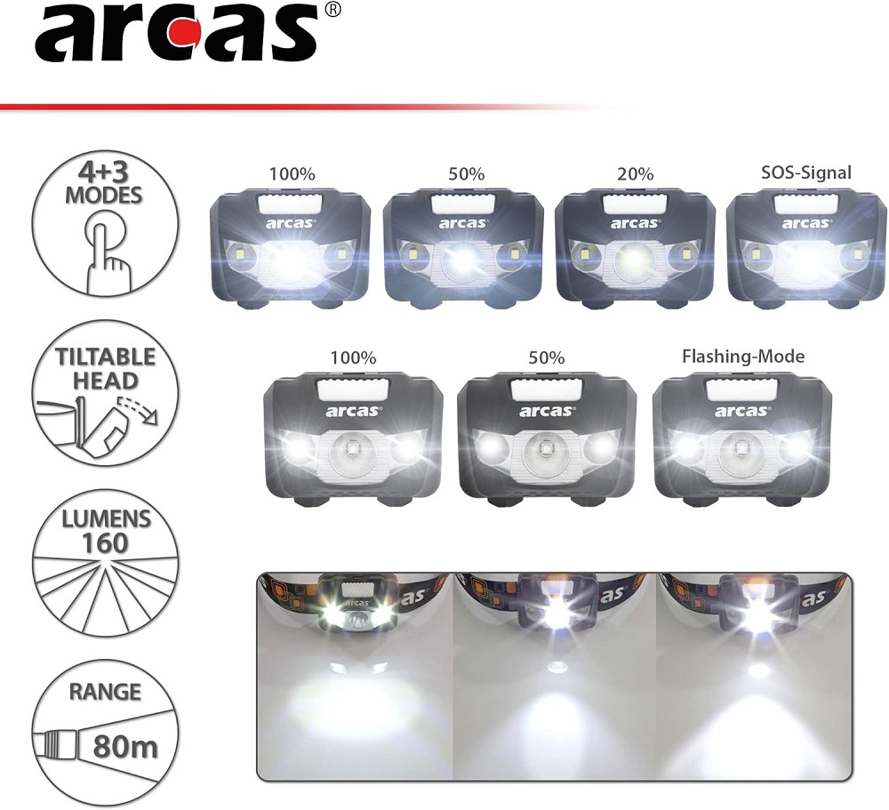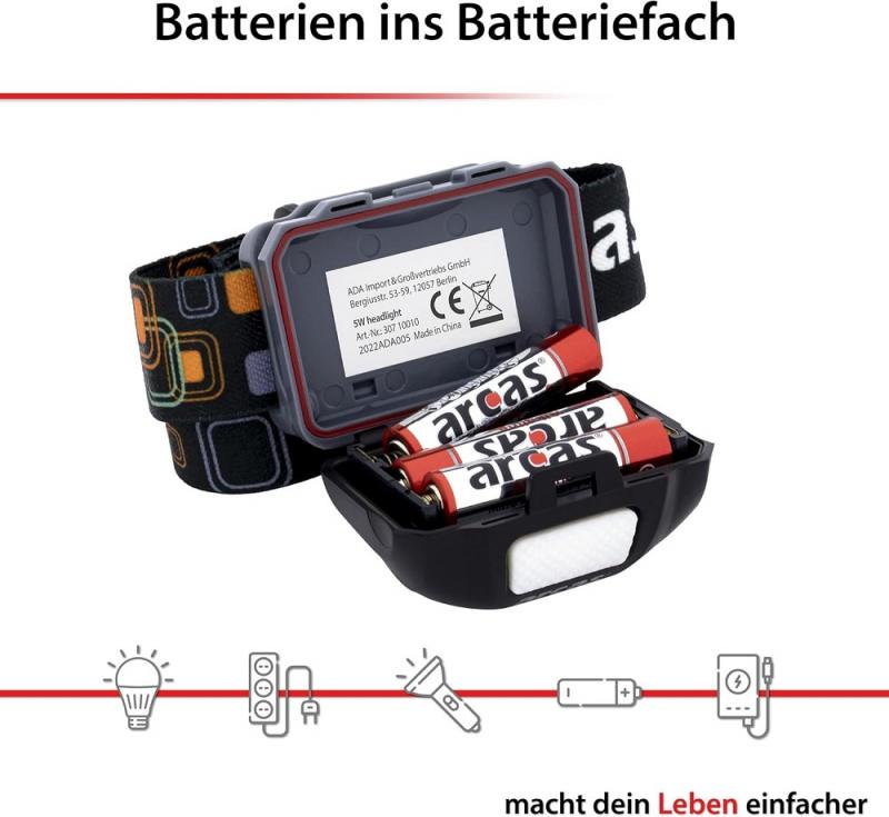 Arcas LED-Stirnlampe "HeadLight CREE" 5W 160 Lumen, inkl. 3x Micro Batterien