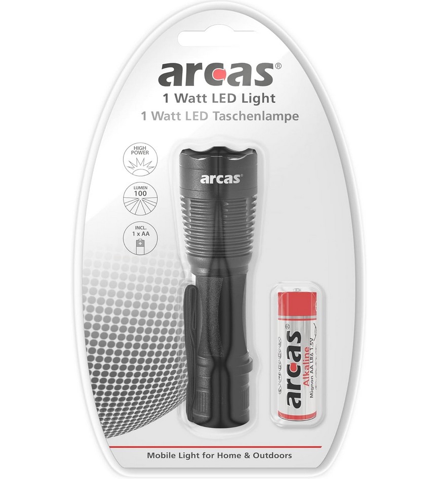 ADA LED-Taschenlampe ARCAS 1W 100lm, LxØ 95x25mm, inkl. Batterie