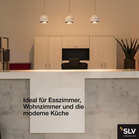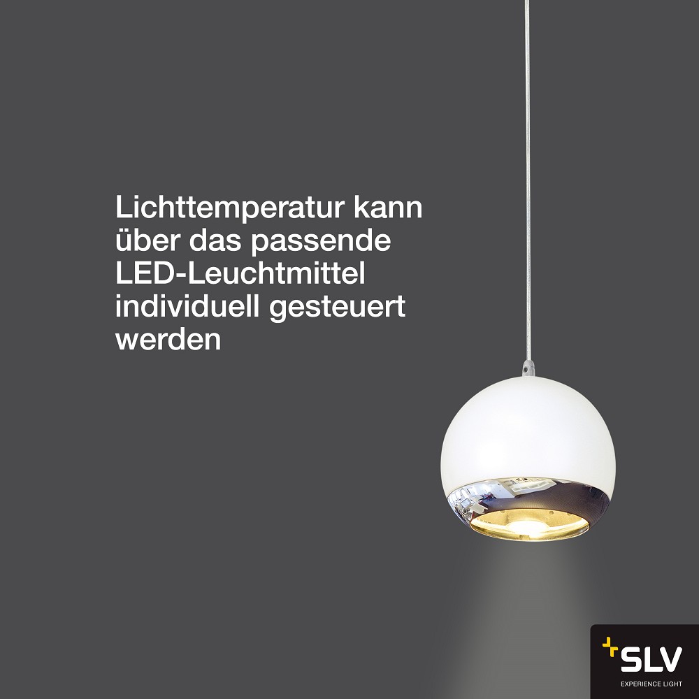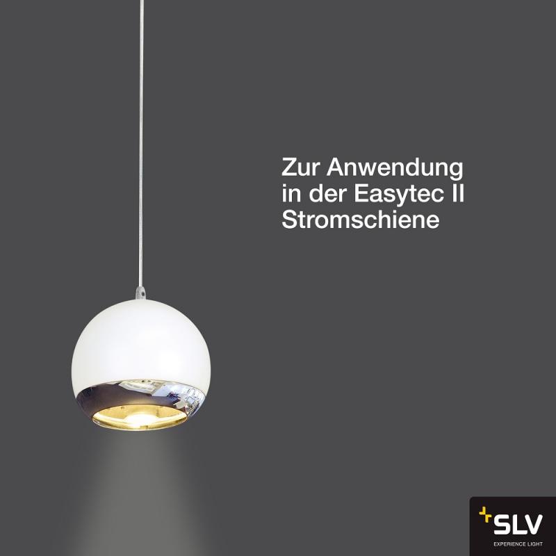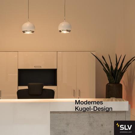 Hochvoltpendelleuchte LIGHT EYE mit passendem Adapter für das 1 Phasen Hochvolt Schienen- System. Die kugelförmige, aus Stahl und textilummanteltem Kabel gefertigte Leuchte ist durch den verbauten GU10 Sockel für Halogen- sowie LED-Leuchtmittel mit einem Durchmesser von 11,1cm geeignet. Die Pendellänge beträgt 1,5m. Diese Leuchte ist geeignet für Leuchtmittel der Energieklassen: E - A++
