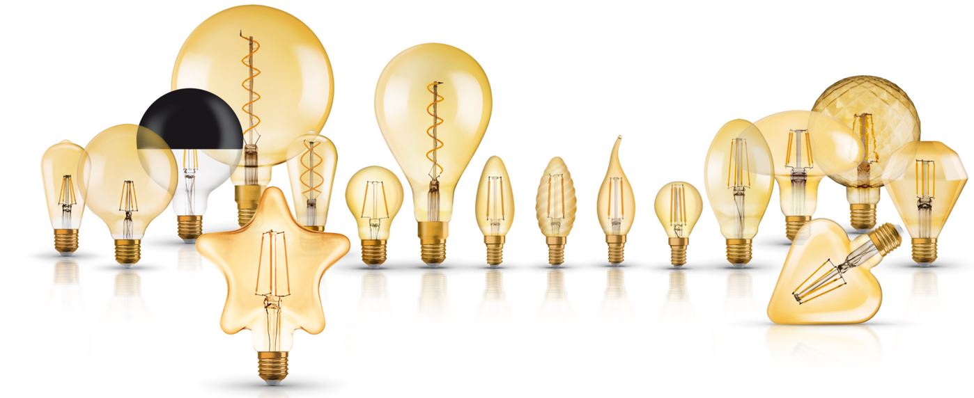 Vintage-Lampen von OSRAM in der VINTAGE EDITION 1906 sind mit ihrem Energiesparpotenzial, ihrem eleganten und einzigartigen Vintage-Design und ihrem warmen bernsteinfarbenen Licht die richtige Wahl für Ihr Zuhause. Sie glänzen in minimalistischen Leuchten, passen aber natürlich zu jedem Beleuchtungskonzept. Dieser zeitlose Klassiker ist in verschiedenen Wattstärken sowie in einer verlängerten P-Form als Neuinterpretation eines alten Favoriten erhältlich.