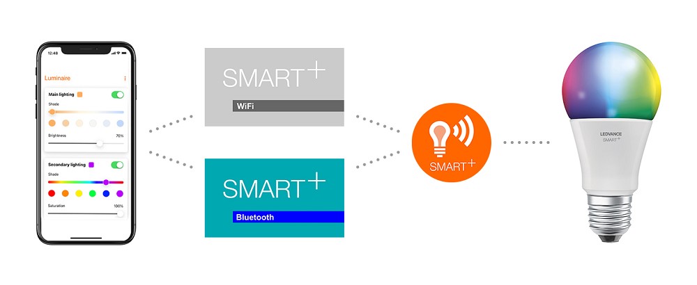 - Für die Steuerung mit der LEDVANCE SMART+ App wird ein Handy oder Tablet (mit Minimum Android 8.0 oder iOS 14.0) benötigt