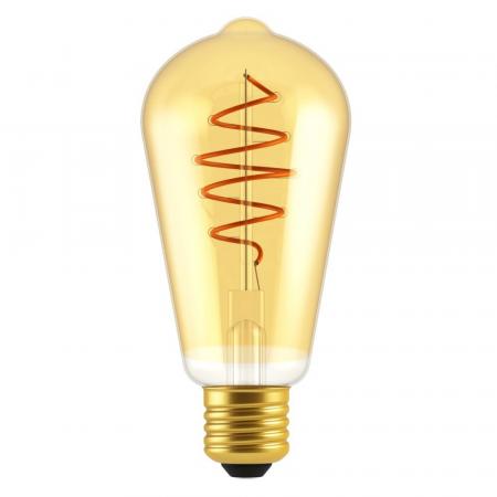 Dieses dekorative Filament Leuchtmittel in Kolbenform mit seiner E27 Fassung wirkt sehr klar und eignet sich aufgrund seiner goldfarbenen Oberfläche und den integrierten spiral Filamentfäden optimal für dekorative Lampen im Vintage Stil.