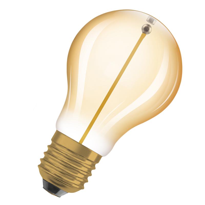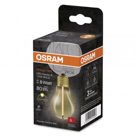 Neuartige und sehr außergewöhnliche birnenförmige LED von der Osram Vintage 1906 Edition mit einem E27 Gewinde und extra warmweißem Licht.