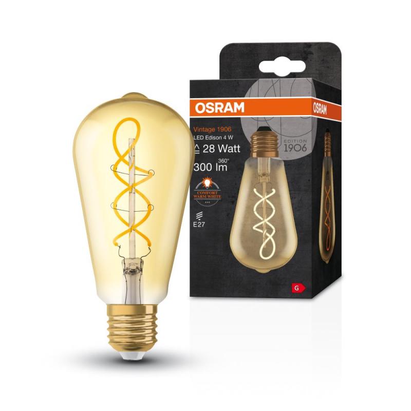Die OSRAM Edition 1906 bedeutet moderne Lichttechnik aus hochwertigen Materialien im Vintage-Look. Klassische Lampenformen werden mit modernster Filament Technologie vereint. Die Edition 1906 ist nach dem Jahr der Eintragung des Warenzeichens „Osram“ und orientiert sich am klaren Industriedesign der damaligen Zeit.