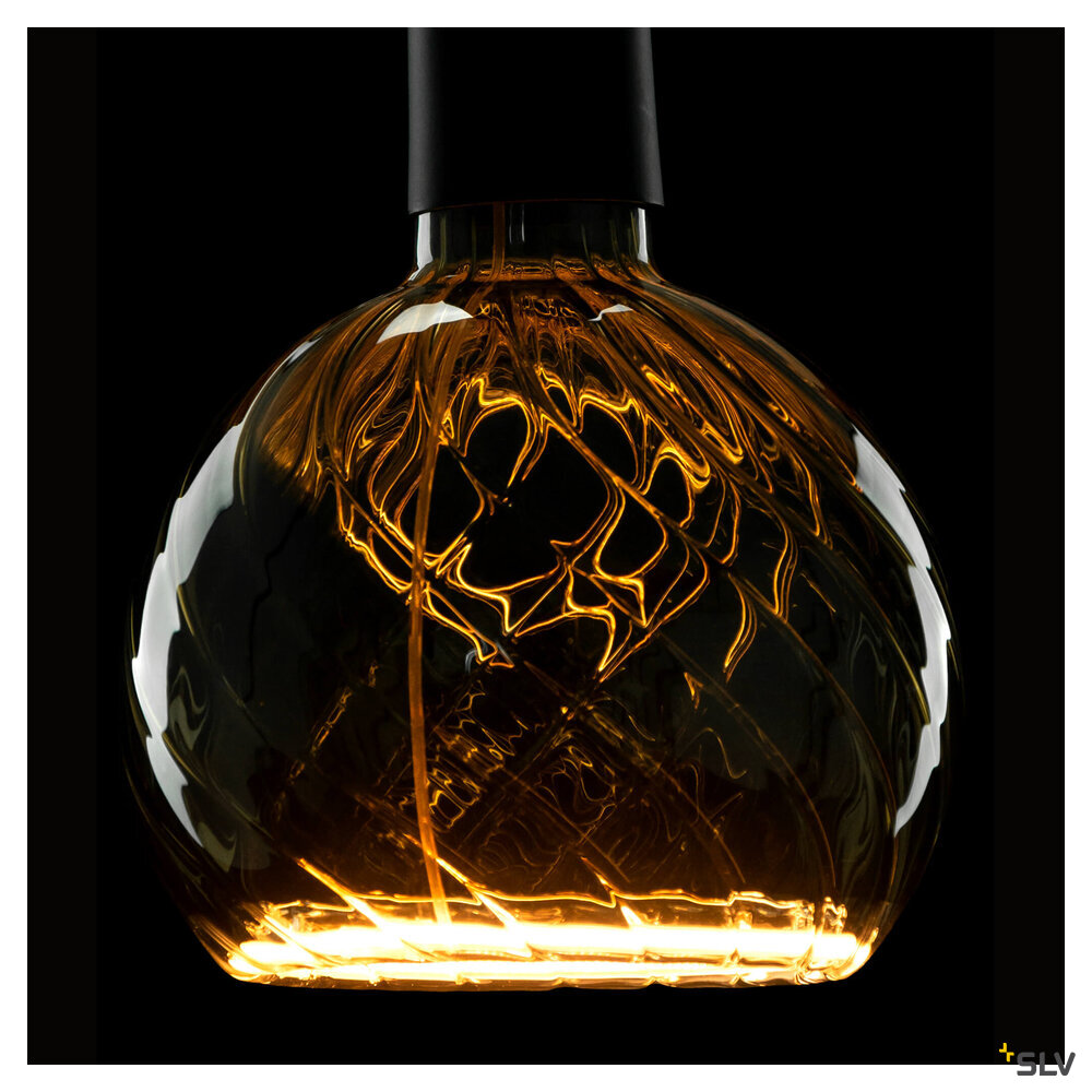 Die einzigartige LED Floating Globe 150 ist mit ihrem schwebenden Licht ein Highlight in jeden Raum. Der Eindruck entsteht durch das strukturierte, gedrehte Rautenmuster in rauchgrauem Glas und der ausgeklügelten, patentierten Soft-Filament-Technologie. Durch ihre volle Dimmbarkeit und energiesparende Anwendung fühlt sich die LED-Lampe sowohl im heimischen Wohnzimmer als auch im großzügigen Hotel-Foyer äußert wohl. Dabei eignet sich die hohle, offene Glühbirne besonders gut für Leuchten ohne Schirm oder für Fassungsleuchten. Einfach ein in Handarbeit gefertigtes Unikat, das durch seine kleineren Abweichungen stets einzigartig ist.