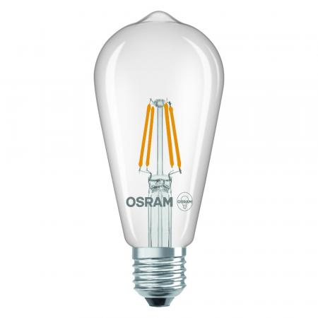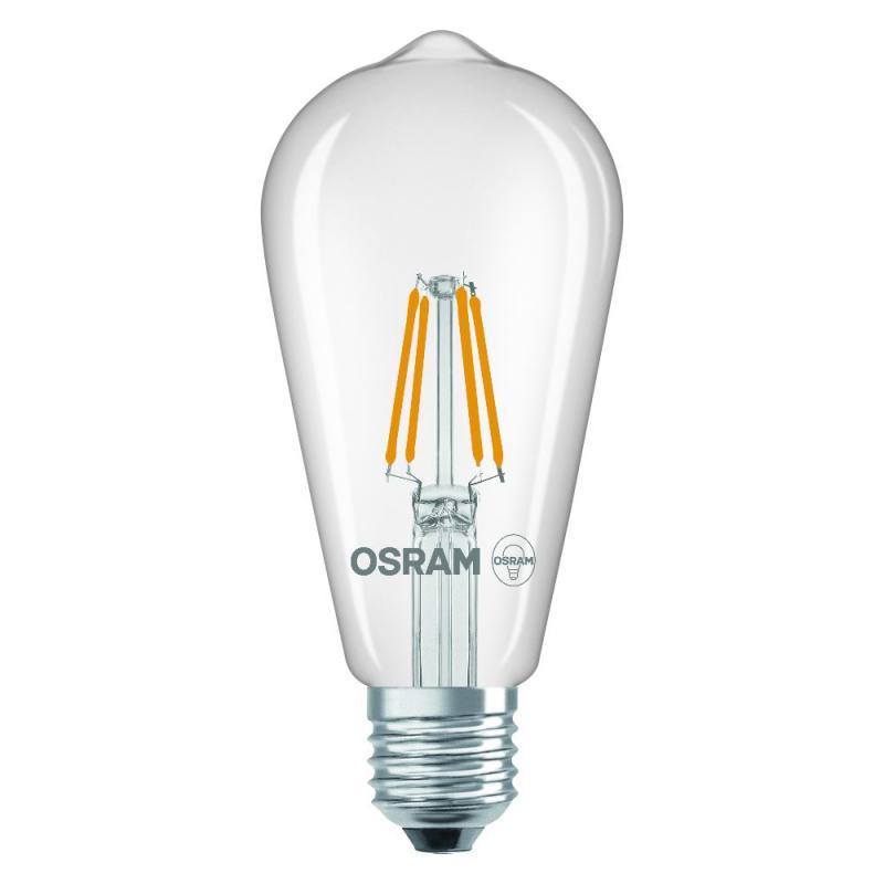 LED als hochwertige Alternative für eine Glühlampe / Glühbirne. Dieses klare Filament LED-Leuchtmittel von Osram verfügt über ein E27 Gewinde und strahlt ein warmweißes Licht für eine gemütliche Raumatmosphäre aus. Die OSRAM-LED verbraucht nur 3,4 Watt, was herkömmlichen 40 Watt entspricht, bei einer guten Lichtausbeute von 470 Lumen. Anwendungsgebiete: Haushalt, Verkaufsräume & Allgemeinbeleuchtung. Außenanwendungen nur in geeigneten Leuchten.