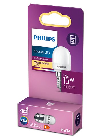Kühlschranklampen von Philips können in Kühlschränken, Gefrierschränken und ähnlichen Geräten mit niedrigen Betriebstemperaturen verwendet werden. Ersetzen Sie einfach die Glühlampen in Ihren Haushaltsgeräten durch die äußerst langlebigen und energiesparenden Philips Kühlschranklampen. Ähnliche Form und Größe wie herkömmliche Glühlampen