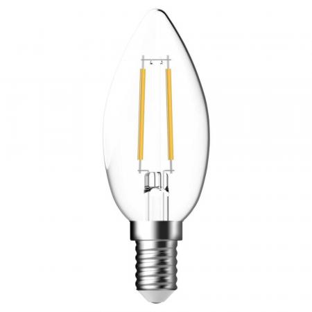 Diese klare Kerze ist eine hochwertige LED-Lampe. Es besitzt einen E14-Sockel und dient als Ersatz für herkömmliche Leuchtmittel mit einem Verbrauch von 20 Watt. Ihr eigener Strombedarf beläuft sich auf nur 2,5 Watt und erzeugt 250 Lumen. Sie zeichnet sich außerdem durch eine lange Lebensdauer und eine warmweiße Farbtemperatur (2700 K) aus. Diese Farbtemperatur besitzt viele Rot-Anteile und erzeugt eine komfortable Atmosphäre. Daher wird sie häufig im Wohnbereich, in der Gastronomie oder im Hotelbereich verwendet. Mit einer langen Lebensdauer von ca. 15.000 Stunden spendet diese LED für ca. 5 Jahre zuverlässig Licht. Das führt zu deutlichen Energie Einsparungen, da keine zusätzlichen Ersatz- oder Wartungskosten auf Sie zukommen.