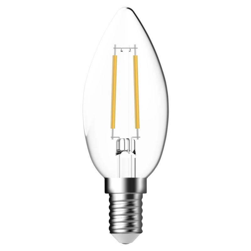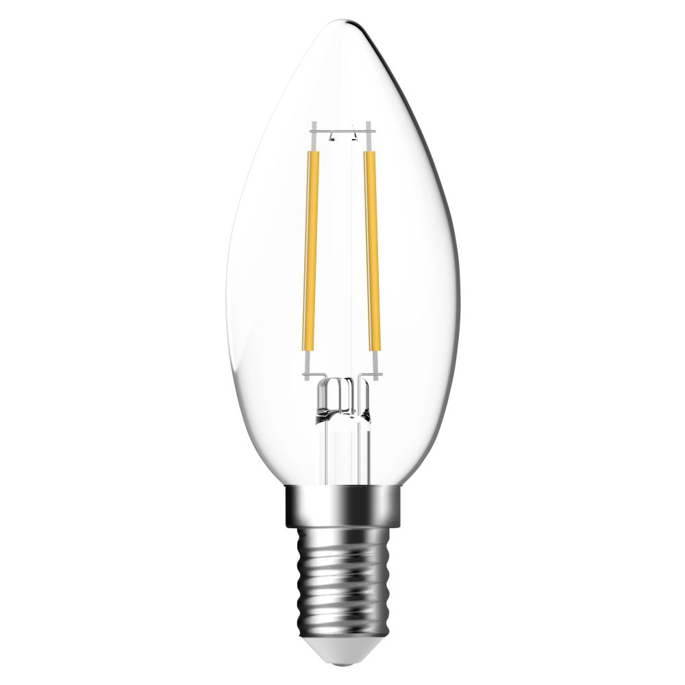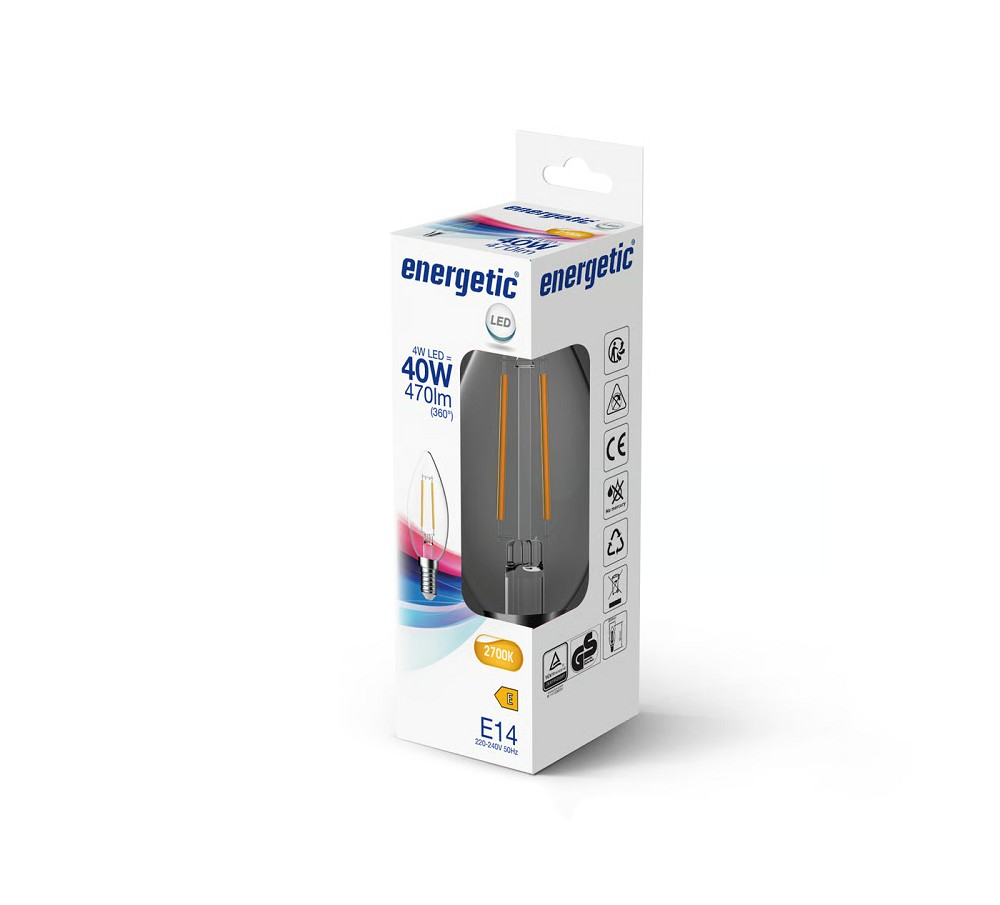 Diese klare Filament Kerze ist eine hochwertige LED-Lampe. Es besitzt einen E14-Sockel und dient als Ersatz für herkömmliche Leuchtmittel mit einem Verbrauch von 40 Watt. Ihr eigener Strombedarf beläuft sich auf nur 4Watt und erzeugt 470 Lumen. Sie zeichnet sich außerdem durch eine lange Lebensdauer und eine angenehm warmweiße Farbtemperatur (2700 K) aus. Diese Farbtemperatur besitzt viele Rot-Anteile und erzeugt eine komfortable Atmosphäre. Daher wird sie häufig im Wohnbereich, in der Gastronomie oder im Hotelbereich verwendet. Mit einer langen Lebensdauer von ca. 15.000 Stunden spendet diese LED für ca. 5 Jahre zuverlässig Licht. Das führt zu deutlichen Energie Einsparungen, da keine zusätzlichen Ersatz- oder Wartungskosten auf Sie zukommen.