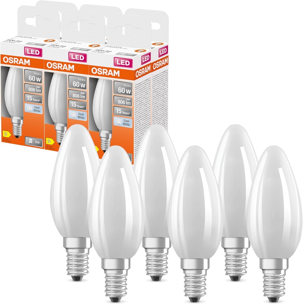 6 x Osram E14 LED Kerzenlampen CLASSIC matt 5,5W wie 60W 4000K neutralweißes Licht