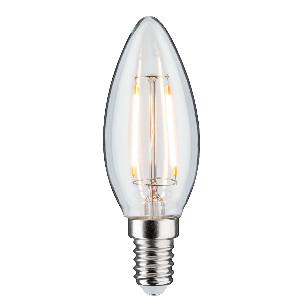 Die Filament Kerzenlampe mit einer Leistung von 2,6 Watt eignet sich durch ihre schmale Bauform besonders für den Einsatz in Lüstern, Wand- und Deckenleuchten. Sie hat eine angenehm warmweiße Lichtfarbe und passt in jede handelsübliche E14-Fassung.