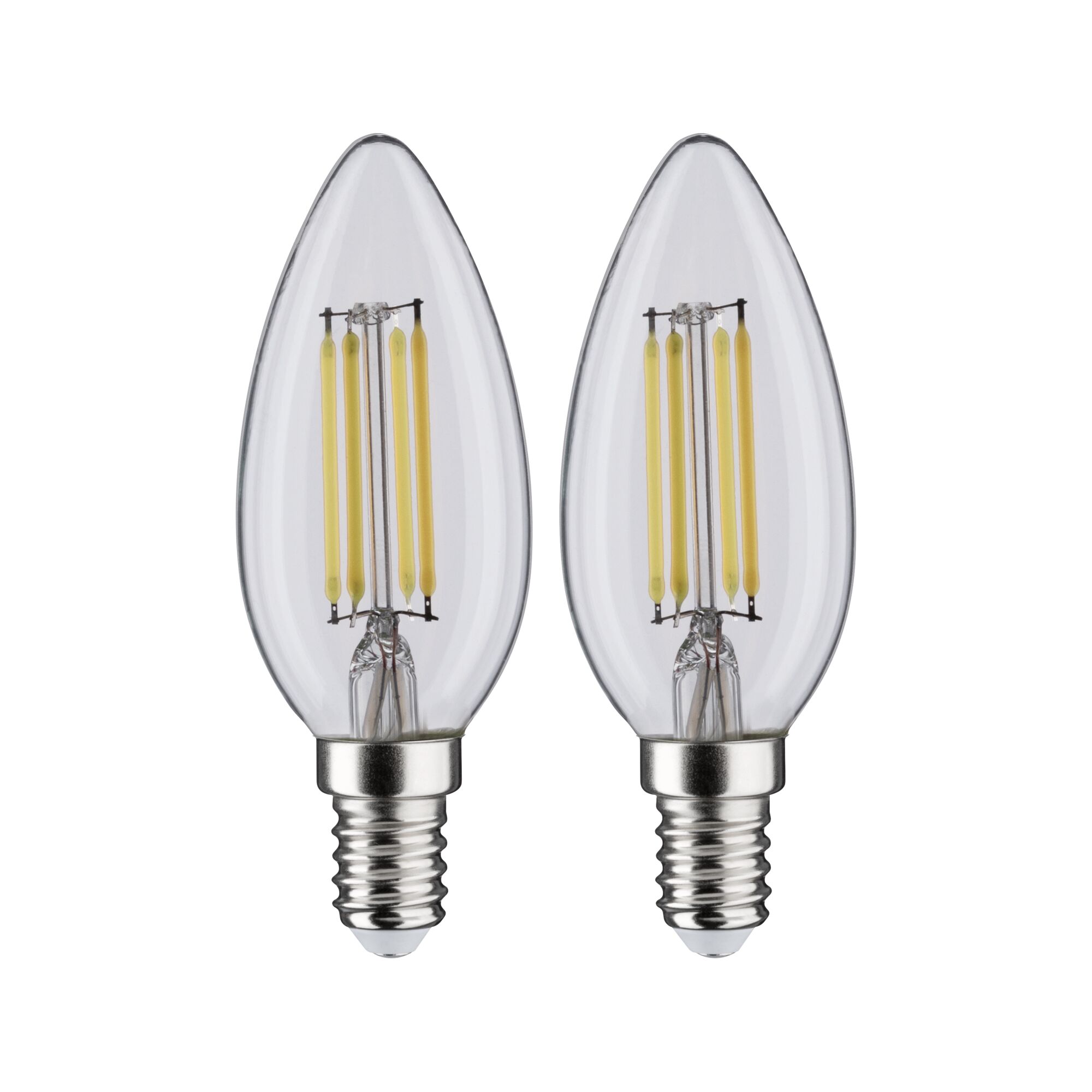 Die Filament Kerzenlampe mit einer Leistung von 2x4,8W eignet sich durch ihre schmale Bauform besonders für den Einsatz in Lüstern, Wand- und Deckenleuchten. Sie hat eine angenehm warmweiße Lichtfarbe und passt in jede handelsübliche E14-Fassung.