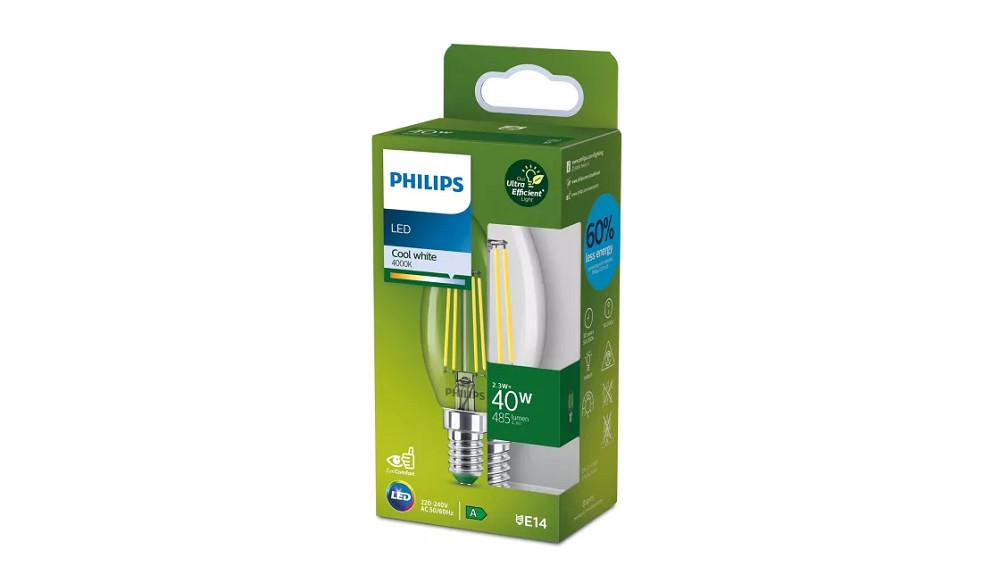 Diese Philips UltraEfficient LED-Kerzenlampe kombiniert klassisches Filament-Design mit hoher Energieeffizienz. Sie spart bis zu 50 % Energie im Vergleich zu herkömmlichen LEDs und liefert ein neutralweißes Licht (4000 K) für eine klare, sachliche Ausleuchtung. Mit einer Lebensdauer von bis zu 50.000 Stunden und EyeComfort-Technologie ist sie ideal für langlebige und augenschonende Beleuchtung.