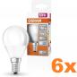 LED als hochwertige Alternative für eine Glühlampe / Glühbirne. Dieses matte LED-Leuchtmittel verfügt über ein E14 Gewinde und strahlt ein universalweißes aus. Die LED verbraucht nur 5 Watt, was herkömmlichen 40 Watt entspricht, bei einer guten Lichtausbeute von 470 Lumen.