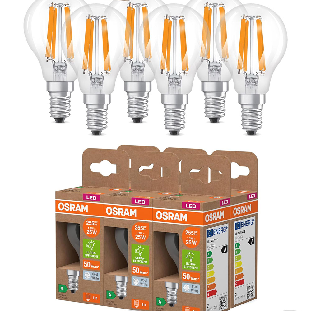 6er Set OSRAM E14 LED Lampe Classic klar 1,2W wie 25W neutralweißes Licht 4000K - Energy efficiency class A