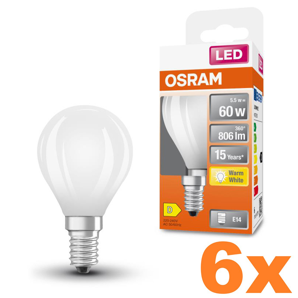 6er Sparpack OSRAM E14 LED Leuchtmittel STAR RETROFIT matt 5,5W wie 60W warmweißes Licht