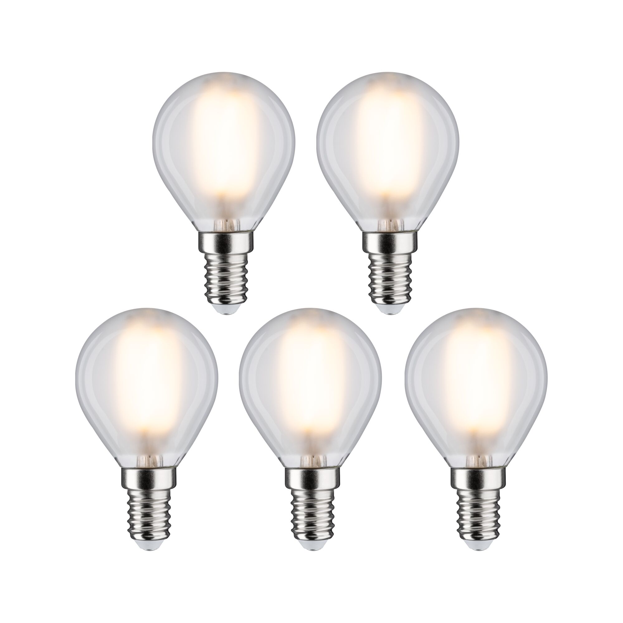 Die matten Filament Tropfenlampen (5er Pack) mit 2700K, einer Leistung von 5x4,8W und 5x470lm schaffen ein warmweißes Licht. Die Lampen passen in jede handelsübliche E14 Fassung. Tropfenlampen eignen sich durch ihre kompakte Bauform ideal für den Einsatz in kleinen Leuchten.