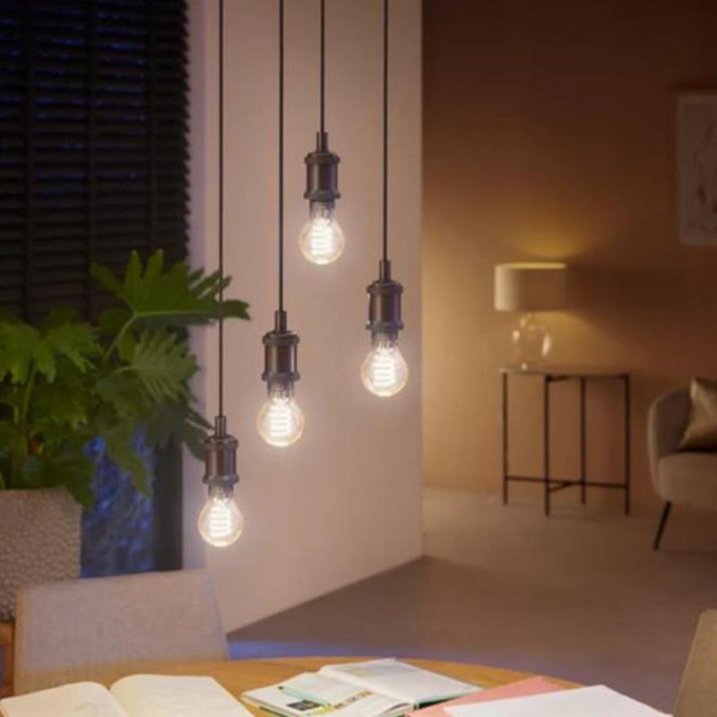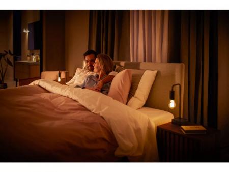 Die Hue Lampe ist eine moderne Leuchte mit traditionellem Design. Verwenden Sie sie, um das perfekte Ambiente in Ihrem Zuhause zu schaffen. Trotz Vintage-Stil ist ist Bluetooth-fähig, hat einen gewickelten Glühfaden und eine elegante bernsteinfarbene Beschichtung. Verwenden Sie sie mit Bluetooth oder verbinden Sie sie mit einer Hue Bridge für weitere intelligente Beleuchtungsfunktionen.